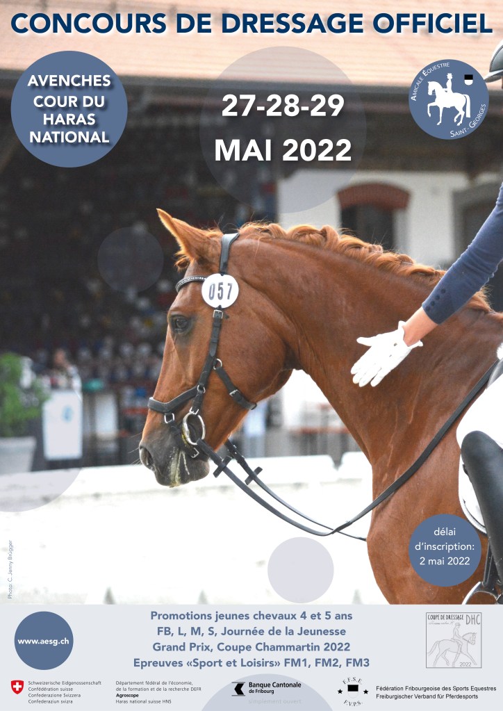 Votre comité se réjouit de mettre sur pied et faire vivre avec vous l’édition 2022 du concours officiel de dressage à Avenches ! Réservez déjà un peu de votre temps pour participer à notre manifestation annuelle !